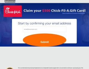 Description: Claim your $500 Chick-Fil-A Gift Card Requirements: Converts on SOI registration with valid details Restrictions: No Adult traffic No Adware/Spyware No Auto-subscriptions No Bot traffic No Content Locking No Coreg No Dublica ...
