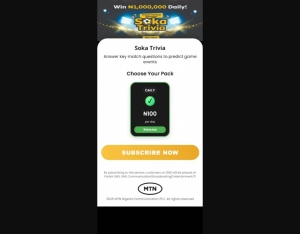 23608 | NG Sokatrivia 2ClickFlow MTN (NG), Wifi Nigeria (NG) 1 | NG | 2ClickFlow | MTN | Mainstream | Games,Sweepstakes