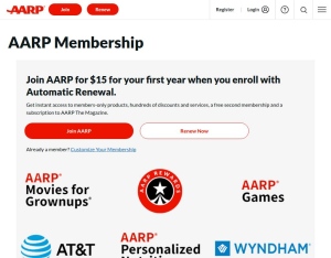 Description: Join AARP for $15 for your first year when you enroll with Automatic Renewal! An AARP membership offers access to exclusive publications, additional rewards, and various members-only benefits, all of which you can share with another memb ...