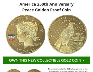 America 250th Anniversary Peace Dollar Golden Proof Coin
