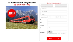 Description: Bahngutschein Requirements: The user needs to fill in the fields and submit (SOI). Allowed Methods of Promotion: Organic Search Traffic, Social Media Marketing, Content Marketing, Email Marketing, Influencer Marketin ...