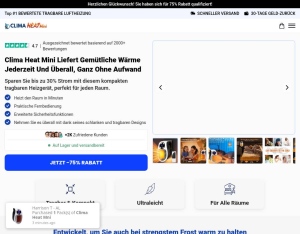The Clima Heater is a versatile, portable heating solution designed to make cold days and nights comfortable without the need for complex installation. Conversion Rate: 1.64% Product Price: $79.99 Average Payout: $80.00 Earnings Per Cl ...