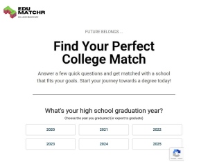 Description: Find Your Perfect College Match Conversion Point: Postback fires on qualified lead. Traffic Sources Allowed: Web sites, Doorways, Context, Display, Native, Social, Mobile, ClickUnder/PopUnder, Network Traffic Restrictions: Fraud traffic ...