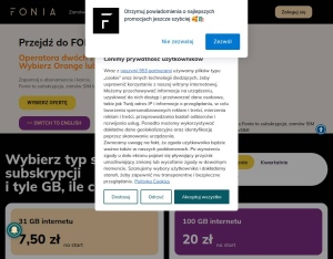 Fonia is the first GSM operator in Poland to operate on a subscription model while using the coverage of two networks: Orange and Plus! The user decides which network to use! Unlimited calls, SMS/MMS, and fast internet up to 500 GB/month – all at the ...