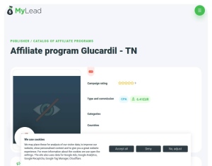 Glucardil is a dietary supplement that contains special ingredients to help balance and maintain blood sugar levels. target age 45+ CC schedule in Tunisia: 09:00 to 21:00 7/7 Original affiliate program offer hereProhibited: - Incent - Fraud ...