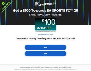 Get a $100 Towards EA Sports FC™ 26! Register, take a survey and claim at least 2 deals to start earning! Flow: 1. Enter some basic information and register with your email address; 2. Answer a few introductory questions and complete at least 2 ...