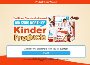 Description: Test Kinder Chocolate for Free and win $500 worth of Kinder Products Requirements: Converts on SOI registration with valid details Allowed Methods of Promotion: Display traffic Email traffic Google traffic Native traffic Pop t ...