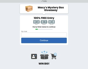 Description: Macy's Mystery Box Giveaway! Timeframe: 9AM TO 6PM EST Conversion Flow: Lead Gen Non engagement from users will get your leads rejected! ...