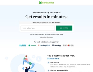 NerdWallet has a huge network of lenders to help get a loan that can work for you up to $50,000! Get results in minutes and money in your account in just a few days, if approved. We analyze lending partners to help you find a great loan for any situa ...
