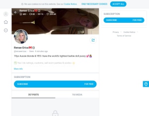 "Hi I'm Renae a 19yr petite Aussie blonde Like all my wall posts for free cheeky pieces of content "- OF: Renaeericax - Age: 19- Location: Australia- Size: 32B- Height: 5'3- Weight: 50kg- Eye: brown- Fav Colour: Blue- Fav Artist: Blackbear- Fetish or ...