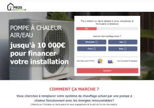 Description: Pompe à Chaleur Requirements: The user needs to fill in the fields and submit (SOI). Allowed Methods of Promotion: Email ONLY Restrictions: No Incent, No Adult, No Bot, No Spam, No Fraud of any kind, N ...