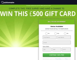 Quiztionnaire Argos Giftcard Green UK