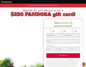 Quiztionnaire - Pandora $250 Gift Card (Christmas) - AU - CPL