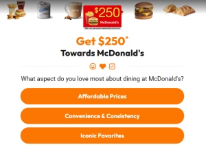 Rewards McDonalds $250 Shopping