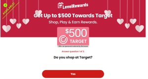 Description: Get Up to $500 Towards Target Shop, Play & Earn Rewards. Requirements: Answer quick questionnaire and sign up Allowed Methods of Promotion: Display, Email, Incentivized, Path Display, Push, Search, SMS, Social Media, Vira ...