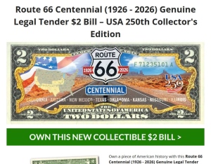 Route 66 Centennial (1926 - 2026) Genuine Legal Tender $2 Bill โ USA 250th Collector's Edition