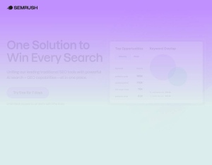 Semrush is the leading platform for growing and measuring brand visibility across virtually every digital channel, including search and AI. Win every search with the data you need to outrank the competition. Rates: TRIAL - 6,47EUR FIRST PURCHA ...