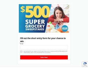 Sign up for a chance to win $500 grocery gift card! Offer converts on unique lead submit Allowed Traffic: Display, Blog posts, Path Link Out, Newsletter, Social Media Traffic, Push (with approval) - MUST USE CORRESPONDING LP Not Allowed: Inc ...
