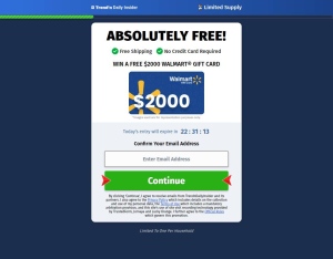 Description: Win A Free $2000 Walmart® Gift Card Target: US Only, No Adult, Ages 18+ Allowed Traffic: Display only Web and Mobile OK, Conversion Flow: Users must register with valid US contact info ...