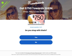 Up Level Rewards US Shein $750 Gift Card