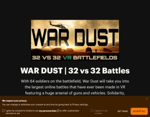 With 64 soldiers on the battlefield, War Dust will take you into the largest online battles that have ever been made in VR featuring a huge arsenal of guns and vehicles. Solidarity, rivalry, cooperation, confrontation: enjoy virtual reality from a ne ...